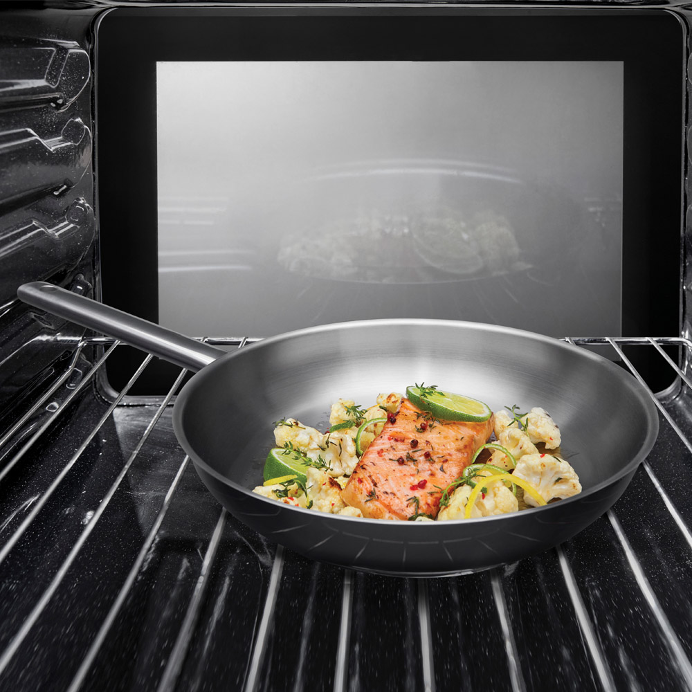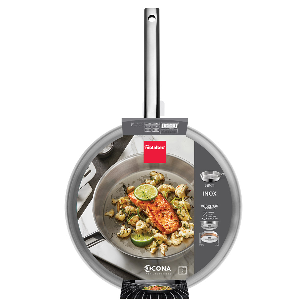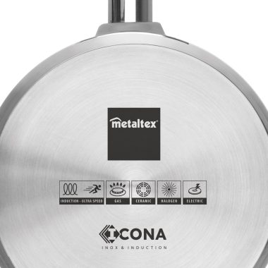 Fondo de 3 capas (acero inox/aluminio/acero inox) ultra-speed full induction de 5 mm de espesor adecuada para todo tipo de cocinas