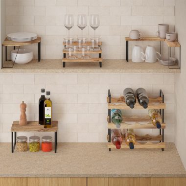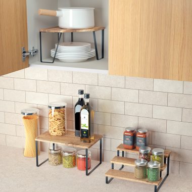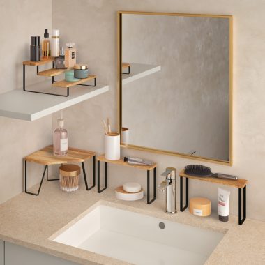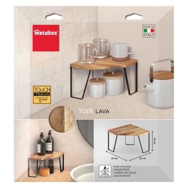 Estante de madera de acacia aceitada Fácil de limpiar Fácil de montar: instrucciones, tornillos y llave Allen incluidos Medidas: 25x25x16 cm Packaging: cartón con colgador