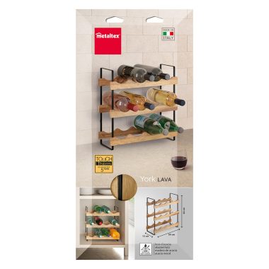 Estantes de madera de acacia aceitada Fácil de limpiar Fácil de montar: instrucciones, tornillos y llave Allen incluidos Medidas: 39x15x36 cm Packaging: cartón con colgador