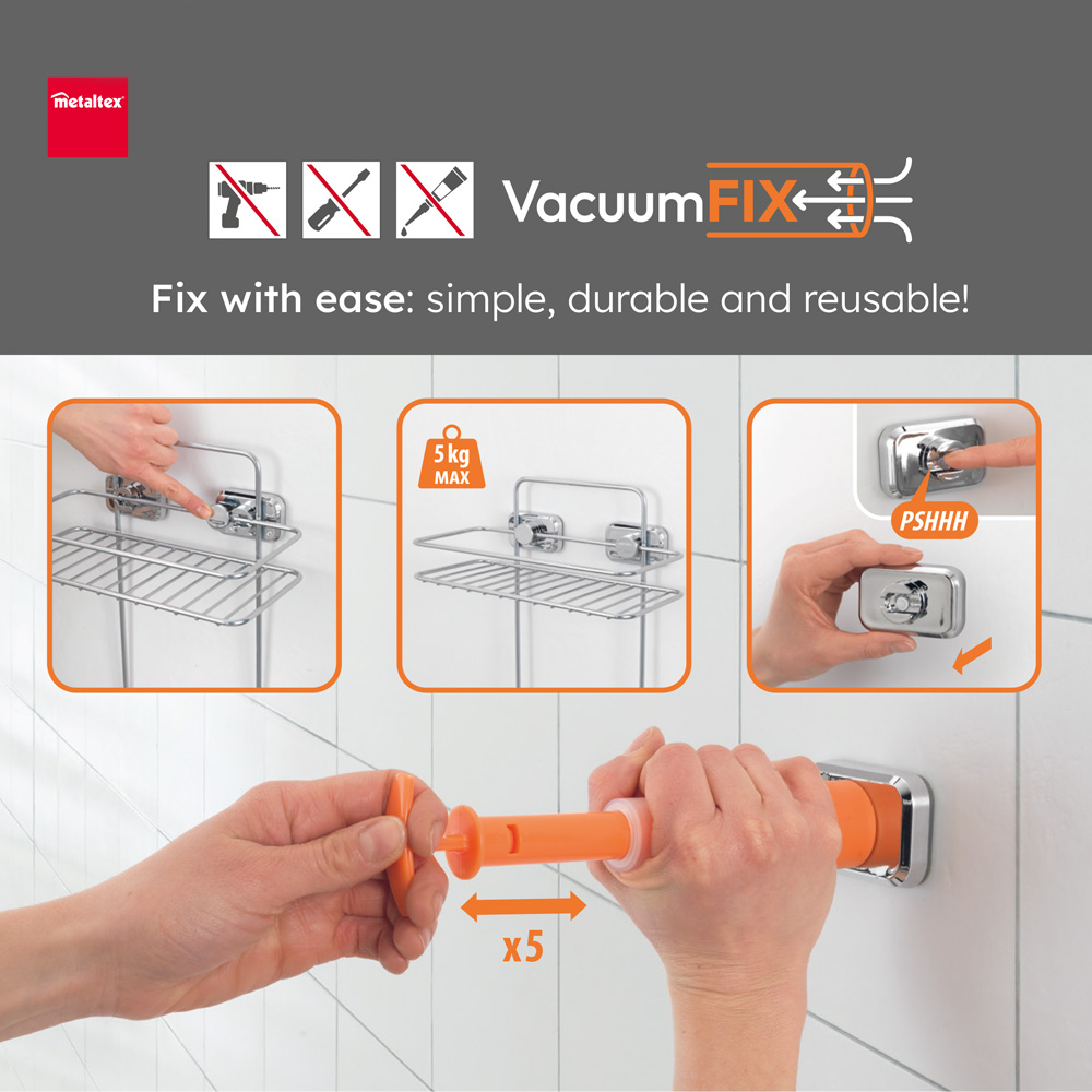 Set 2 ganchos cromados con bomba de vacío VACUUMFIX LUXY