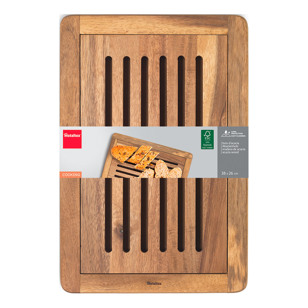 Tabla de cortar con ranura madera de acacia 39x26x2 cm